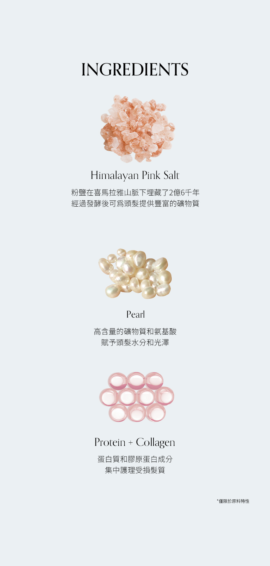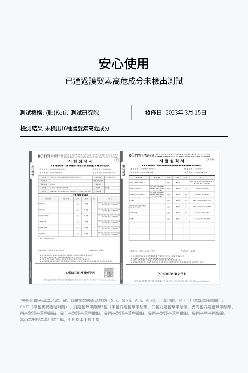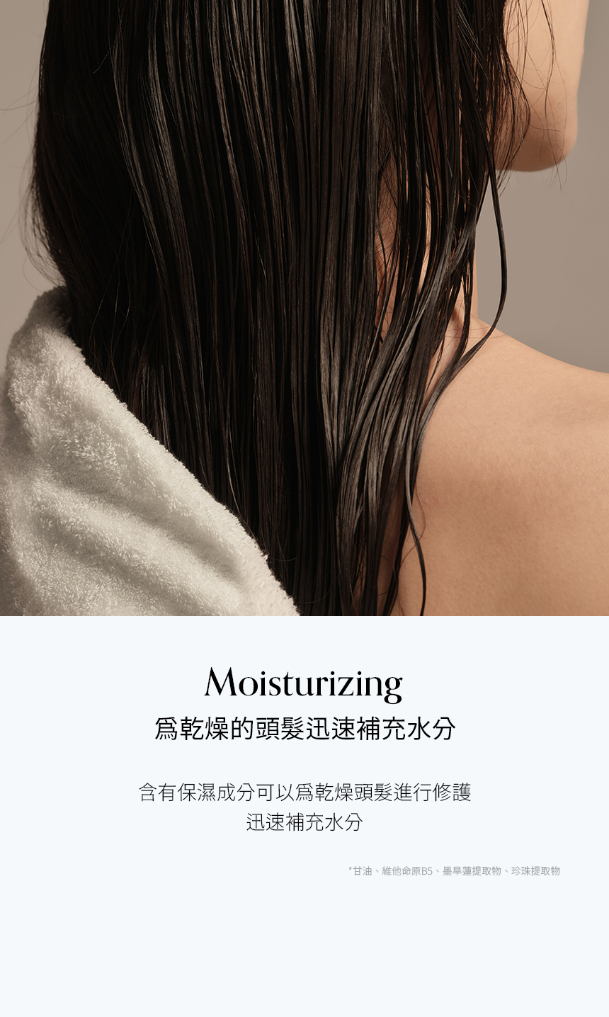 - 加入海洋珍珠複合物 有助維持髮絲水分